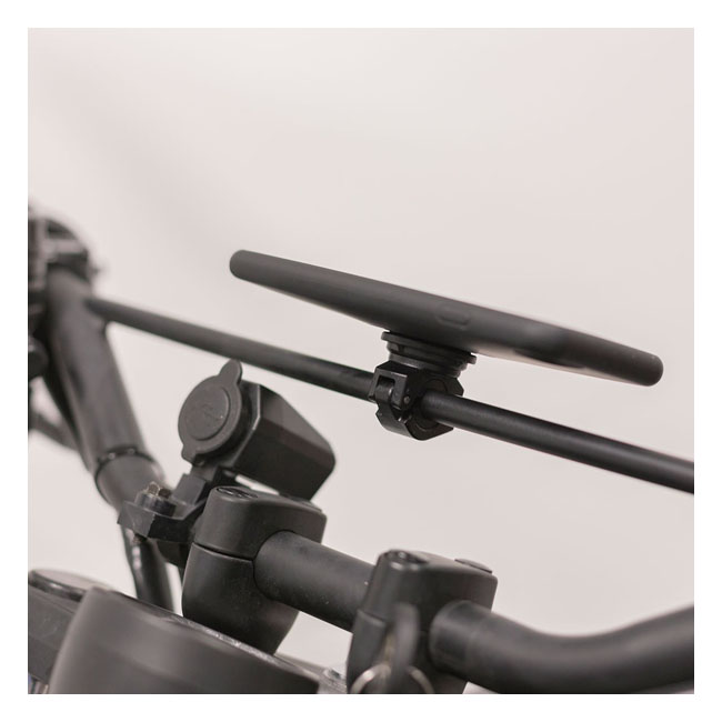 Used to low profile attach your SP Connect™ Phone Case to most mirror stems or handlebar crossbars. The simple 90 degree 'Twist to Lock' mount; in a vertical or horizontal orientation; allows 360° rotation. Comes with inserts to fit 10mm (0.39") to 16mm (0.63") diameter round bar.