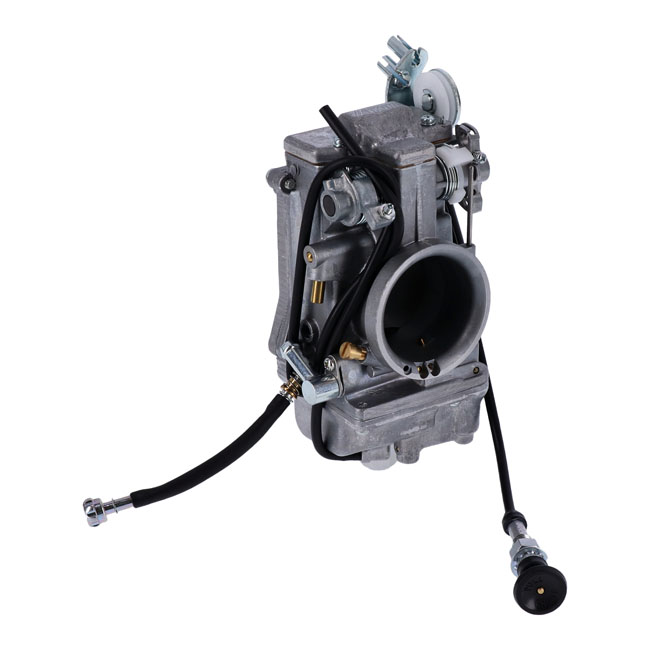 The racing carburetor for monster motors. The Mikuni HSR48 delivers the highest airflow with accurate fuel metering for more power and precise throttle control. An extended main jet and larger needle valve assembly ensures maximum fuel flow to powerful engines. Intended for use by experienced builders. Includes carburetor and manifold adapter rubber.