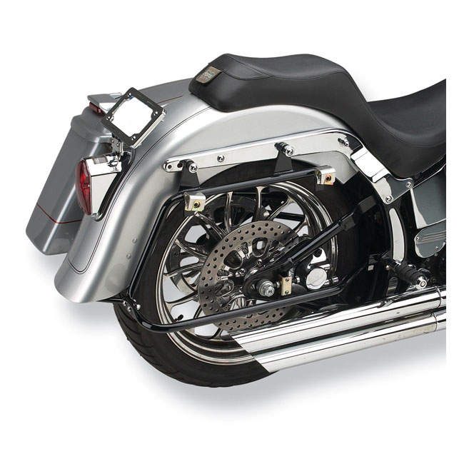 Cycle Visions, Bagger-Tail saddlebag mount kitSteel. Black powder coated. Mounting kit; with all required hardware; to install 93-up style left & right side Touring fiberglass hard bags or leather bags to Softail models.