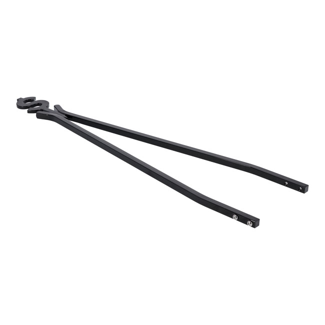 Black powder coated. 30" tall. Side plate width 6.88" to 7.625" wide. Made from 9/16" square steel bar. Can be used with stock or aftermarket side plates. Note: Side plates not included. Note: Will not fit 'Plug-N-Play®' side plates.