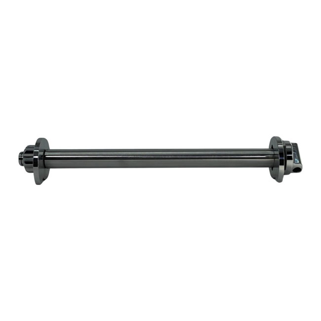 Includes proprietary nut; eccentrics; shoulder washer; E-ring and anti-seize. Increased eccentric thickness prevents failure. Offers great and lasting custom looks. Made from 17-4 series polished stainless steel; which offers sheer and tensile strength comparable to that of chromoly with superior corrosion resistance. Axle will not bend or break and is ball burnished for the toughest bearing surface. Comes with a high quality 12-point stainless steel nut and washer. Nut is secured by a stainless steel e-ring. Comes complete with instructions and anti-seize. OEM replacement reference 41056-02. Note: Axle and nut must be 100% clean before installation and coated with provided anti-seize (Loctite LB8012). This includes 'test fitting / hand tightening'. Cleaning axle; threads and anti-seize coating remains applicable when reinstalling after servicing wheel.