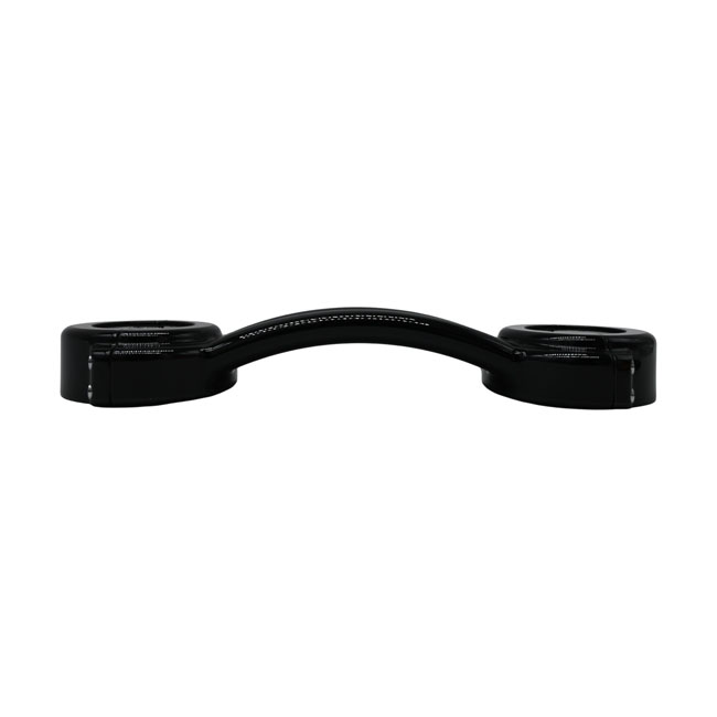 Designed for use with 49mm Mid Glide forks. High quality gloss black one-piece rigid fork brace; complete with chrome plated installation hardware. Used to help prevent fork twist on all bikes with traditional hydraulic forks for an overall more stable front end. Absolutely advisable for bikes with with single brake rotors or extended front ends. Unique design contacts the top portion (dust cap area) of the fork slider; as well as the larger area directly beneath the dust cap area.