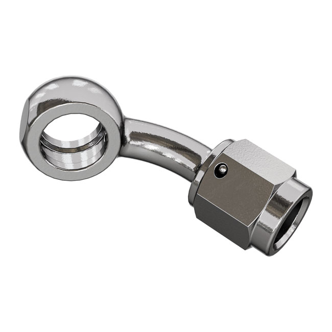Goodridge, banjo adapter 45 degree 3/8" or M10 bolt holeHigh polished stainless steel banjo for use with