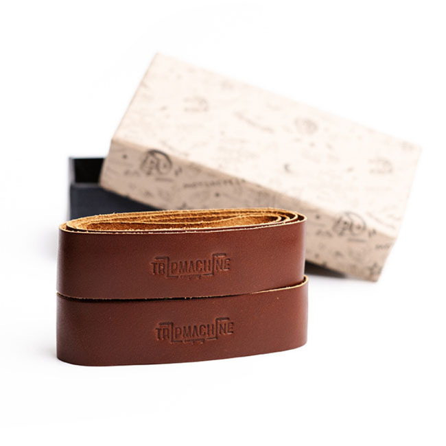 Trip Machine, leather handlebar grip wraps. Dark Tan Cognac