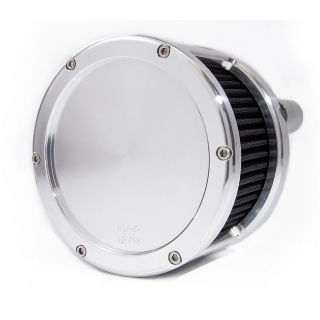 Black filter element. Race Series. Tall cage & extra wide for ultimate flow. Mid controls required for leg clearance. 595 CFM@28. Compatible with standard throttle body fitment (OEM H-D: 55mm - Screamin' Eagle: 64mm - HPI: 58mm and 62mm). Out of the box; this Feuling air cleaner is set up with OEM style cylinder head breathing; routing into the intake with optimized vent hole locations to meet emissions standards. External Race Only venting to atmosphere available with separate purchase of Feuling 707101 external breather kit which includes fittings; vent line and breather element. The backing plate is engraved with both 'Made in USA' and 'Feuling' logos. A lot of meticulous testing and tweaking went into the design of the bolt-on BA (Billet Aluminum air cleaner); to create excellent performance (+500 to 595 CFM@28 on a SuperFlow SF600); all paired with the smallest possible dimensions. Full one-piece billet aluminum cage; the included velocity stack drops in; followed by the air filter element after which the cover is installed. This simple construction gives a very clean look and easy installation when compared to many others. The velocity stack is used to lengthen the intake track and increase intake velocity to improve cylinder fill especially midrange performance; where most riding is done; and up. Comes with a reusable high flow cotton based red pre-oiled air filter element. Note: Optional covers are available in raw polished; hard anodized black and chrome plate