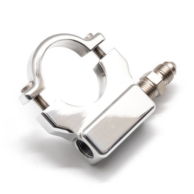 Used to install a 1.5" (38mm) oil pressure gauge to the handlebar. With 1/8 NPT treaded adapter. Manufactured of 6061 billet aluminum and comes with stainless Allen head bolts and a 1/8 NPT to -3AN adapter fitting. USA made.