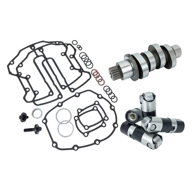 Note: Special Order Product only. To order please contact your MCS sales representative. Chain drive. This Feuling M8 camshaft kit includes chain drive camshaft; Race Series lifters and a cam installation kit that includes cam bearing; cam/crank hardware and a gasket/O-ring kit that allows for install of the factory one-piece pushrods. Feuling recommends the optional 993528 Feuling one-piece heavy duty HP+ pushrod kit; with 0.165" wall thickness. Feuling rocker box fastener kit 707450 is also highly recommend to help prevent cylinder head cracking; this kit replaces the rocker shaft bolts with studs and nuts to help reduce the stress on the rocker shaft standoffs.592 CAM - 'The big nasty' Put your big boy pants on get serious with bore size; ported cylinder heads and throttle body. Aggressive camshaft requiring high lift and higher load valve springs; performance pushrods and lifters. High flow air cleaner and triple stepped exhaust pipe highly recommended. FEULING also recommends matching this cam with our RACE SERIES oiling.NOTE: High Lift/High Load valve springs required; Feuling recommends their 588022 High Load Beehive valve spring kit. Clearances must be checked when installing this cam. Kit includes 707543 592 camshaft. RPM range 2;750 - 6;350. Valve Lift Open Close Duration @ 50" Lobe CenterlineIntake .578 20 34 234 97