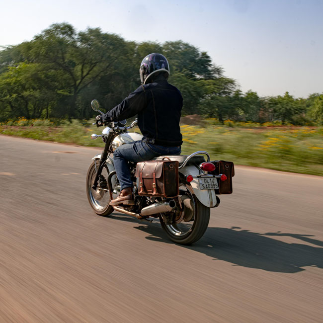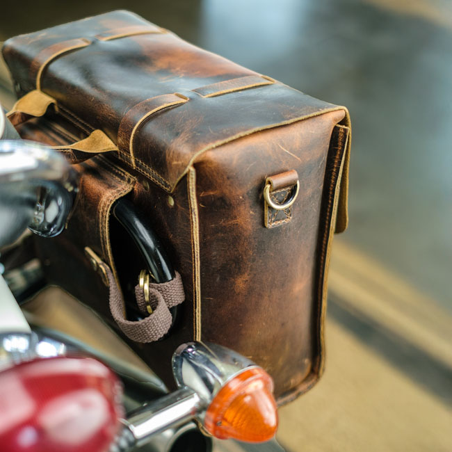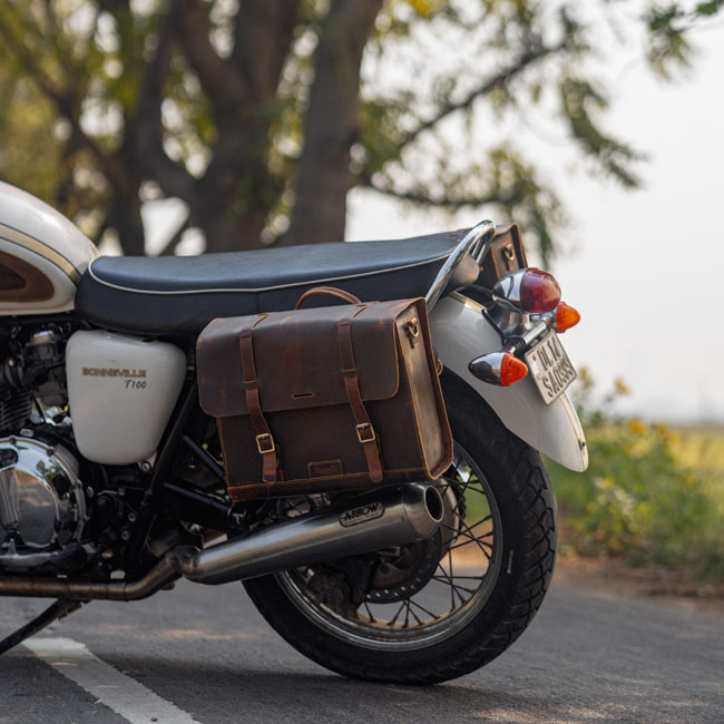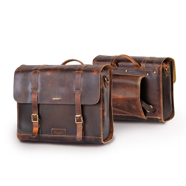 - Crafted to fit the Triumph Bonneville series; Royal Enfield Super Meteor 650; Shotgun 650 & Meteor 350 - For use on H-D or other bikes in custom applications - Set of 2 bags with leather straps - Made from 100% premium 2.2 mm thick hard waxed heavy-duty leather - Complete with rain cover - Includes leather shoulder strap (for off bike use); custom mounts; and a rain cover - Capacity 13 liters per bag - Dimensions: 34cm x 27cm x 14cm. Note: A model specific matching 'saddle stay' (708437; 708440; 708438; 708439) is sold separately. It is available for various Triumph & Royal Enfield models allowing an easy installation to the bike.
