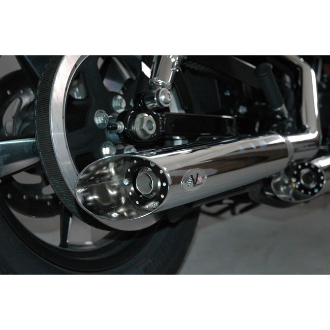 V Performance, 80mm Slash Cut slip-on mufflers. Chrome