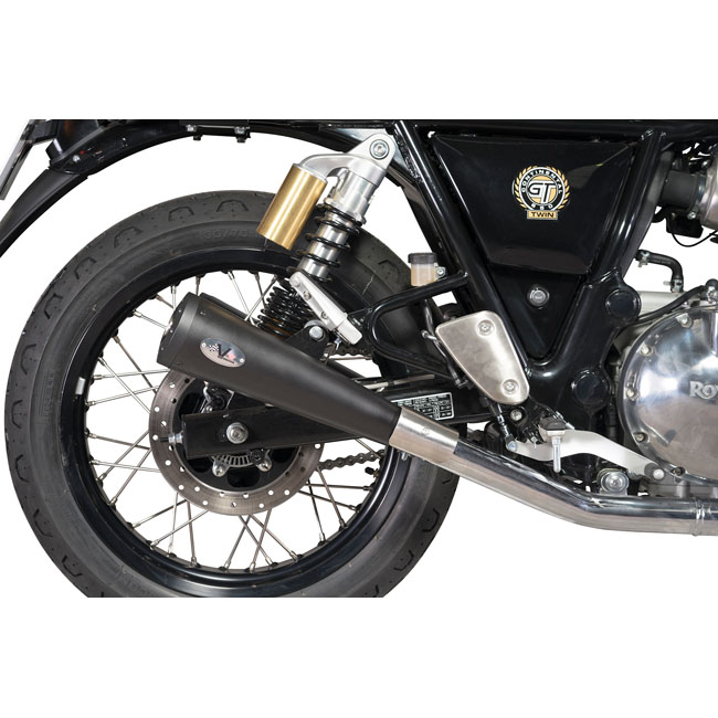 Euro 4 homologated. Slip-on black ceramic coated stainless steel replacement mufflers with catalytic converter and removable Db killer. Offers bolt-on installation ease onto the stock head pipes. The muffler is shorter and much less 'massive' overall; way better matching the sporty lines of the GT650. Like with all V Performance mufflers; the exhaust tone is nice and deep by using a special inner muffler cartridge design. It comes in black; a 900°C heat resistant satin black ceramic coating for lasting beauty. The end cap is CNC machined Ergal (aluminum 7072). Note: Homologation is valid for unmodified stock bikes; for the specific models and model years as mentioned in the product description. Removing or modifying the standard Db killer will void the homologation. Note: See 708854 for the replacement Standard Db killer