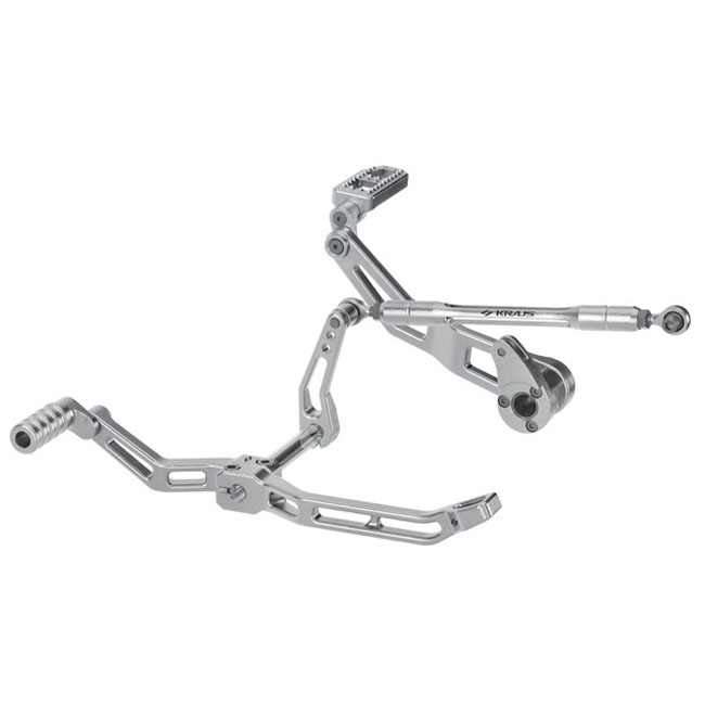 Clear machined finish billet aluminum construction. This kit is a lightweight and rigid design; engineered to give you a quicker responding; more precise performance riding experience. Engineered for confidence; when pushing limits in the twisties or banging gears on the open road your shift and brake controls are right where you need them; perfectly positioned and unmatched in precision and control; all to lift your riding experience to the next level. Complete with all required hardware for a hassle-free installation. - A design match with the Kraus' Max Lean floorboards - 360-degree adjustable toe shifter and brake pedal allow placing you feet in the perfect position - Three customizable shift ratio settings - Improved brake feel and shift action - Low profile heel shifter - Fast and easy fine-tune adjustment with shift rod - Reduced weight and added style - Compatible with Kraus 998032 EZ-Shift ratio adapter - Black anodized billet aluminum lightweight construction Note: Compatible with and must reuse the OEM shift linkage / shifter rod. Note: Style compatible with the Kraus floorboard line.