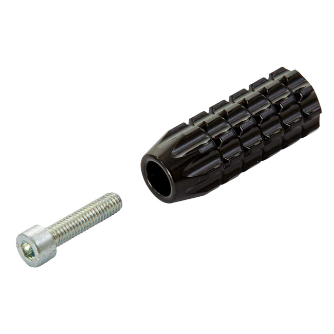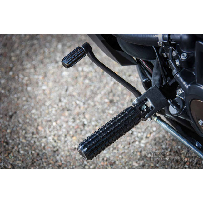 Black anodized. Rick's Motorcycles AK 4.7 shifter peg is an OEM replacement and fits the stock mounting location on Sportster S and Nightsters. Made from CNC machined aluminum with machined grooves for optimized grip on the shifter peg