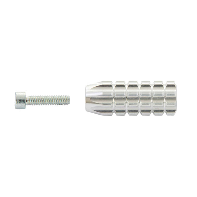 Machined finish. Rick's Motorcycles AK 4.7 shifter peg is an OEM replacement and fits the stock mounting location on Sportster S and Nightsters. Made from CNC machined aluminum with machined grooves for optimized grip on the shifter peg