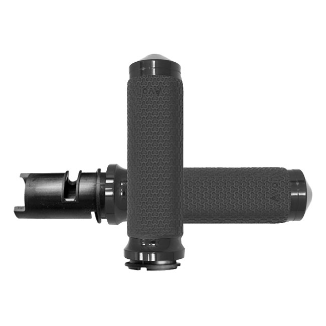 Memory Foam. Small diameter 1.375". The Avon memory foam grip is the softest; yet most durable grip on the market today. Additionally they are vibration dampening and offers chemical resistance. End caps and collars on the grips are made of billet aluminum. USA manufactured. - Black EVA foam - Dimensions: Inside length = 4.600" OD = 1.375"