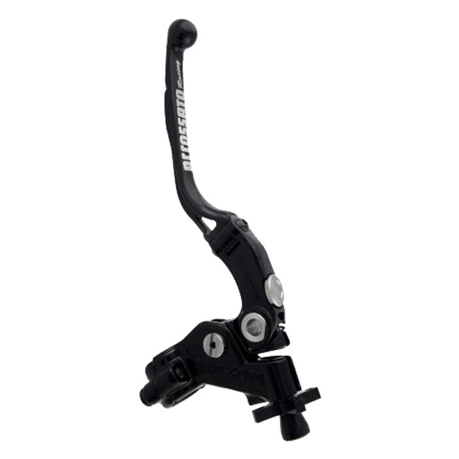 Black anodized lever assembly with a black anodized clutch lever and cable adjuster. Folding lever without RST (Racing Short); so not slotted for weight reduction. For 1" (25.4mm) diameter handlebars. The Accossato Racing cable clutch 'Racing' is a patented; one-of-a-kind component designed for high-performance riders. Featuring a unique "click" cable adjustment system and the exclusive ability to adjust the distance between the lever and the grip; this clutch offers unmatched customization. The folding lever is CNC-machined from anodized aluminum and available in multiple colors; with the cable adjuster matching the lever color. - Non adjustable 19mm distance for track/street use - Stainless steel hardware - Integrated micro switch - A mirror holder is separately available as 721082 for M8 or 721083 for M10 threaded mirrors - Does not include required clutch cable
