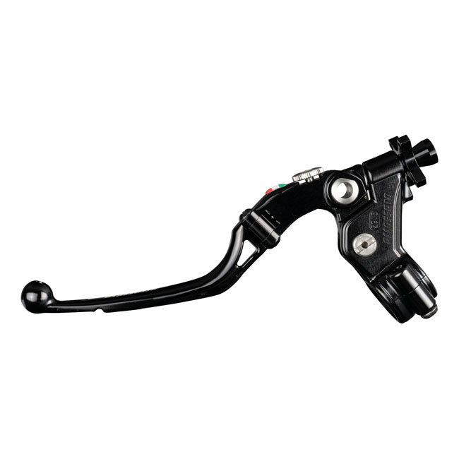 Black anodized lever assembly with a black anodized clutch lever and cable adjuster. Folding lever comes with RST (Racing Short); so not slotted for weight reduction. For 1" (25.4mm) diameter handlebars. The Accossato Racing cable clutch 'Racing' is a patented; one-of-a-kind component designed for high-performance riders. Featuring a unique "click" cable adjustment system and the exclusive ability to adjust the distance between the lever and the grip; this clutch offers unmatched customization. The folding lever is CNC-machined from anodized aluminum and available in multiple colors; with the cable adjuster matching the lever color. - Non adjustable 19mm distance for track/street use - Stainless steel hardware - Integrated micro switch - Does not include required clutch cable