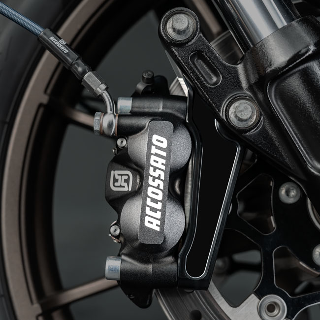 Black anodized finish. 108mm mounting distance. Aluminum pistons. 4x ST (Standard sintered) brake pads per caliper. Complete with Standard brake pads. Accossato Monobloc Forged Radial Brake Calipers are engineered for riders that demand maximum performance and precision. Comes complete with 4x ST (Standard sintered) brake pad set. Manufactured from high-quality CNC machined forged aluminum; this caliper combines strength with a rigid lightweight construction to deliver exceptional braking control and reliability. Each caliper is designed to maximize braking efficiency and handling. Each caliper is also checked and tested before it it leaves the factory. This makes an Accossato caliper an excellent choice for riders that demand top-level technology paired with uncompromised quality.