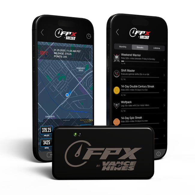 The FPX (Fuel Pak X) is more than just a smartphone-tuner; it’s the future of connected riding. With seamless tuning; real-time engine data; smart navigation; and built-in safety features like theft prevention and crash detection; the FPX doesn’t just enhance your experience; it transforms it.Built into the heart of FPX is the all new achievements & challenges experience. Track your performance; get rewards for milestones; and foster head-to-head competition with your friends and other riders worldwide. - Navigation features are done through the app which requires internet connectivity through either wifi or your phone data - Bluetooth allows the app to communicate with the FPX device plugged into the bike - Downloadable in Google Play or the App Store - Race bred performance; real world intelligence - Rack up badges for performance goals; tuning milestones; riding streaks; and more. Every ride should earn more than just road grime. Download the App for a full list of achievements - Flash tuning: Dial in your ride in minutes with the extensive library of Dyno tuned maps; backed by the new enhanced processor. Adjust fuel mapping; throttle response; and more all from your smartphone - Anti theft technology: Remotely prevent motorcycle from starting without reflashing the ECM to enhance security and deter theft effectively directly from the app - Turn by Turn navigation: Built-in smart navigation keeps your eyes on the road and your ride on course; so you never have to