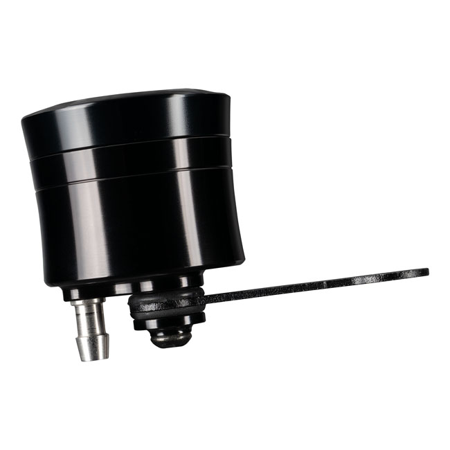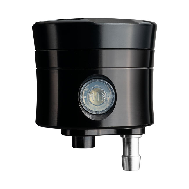 - Black anodized finish - Vertical brake fluid outlet - With a straight mounting bracket - CNC-machined aluminum - 25 cc capacity - Used in custom applications were an all-in-one style rear master cylinder is not the right solution