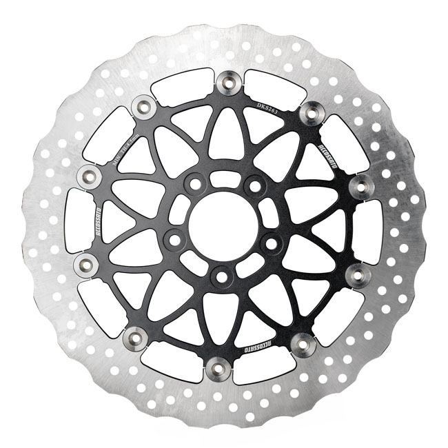 Oversized. Stainless steel disc with black anodized carrier. 11.5" / 330mm O.D; 56.3mm I.D.; 8.5mm (5/16") counterbored mounting holes with with 3.25" bolt circle hole. 5.0mm thick. Mount style 'B'. Accossato brake rotors are precision machined high performance floating discs to fit standard 5-bolt H-D hubs. Perfect equipment for either a stock to high performance machines. Model year applications and OEM H-D part numbers are given for fitment reference only. All Accossato brake rotors are of the floating design and consist of a stainless steel brake disc with a black anodized lightweight aluminum carrier. Note: For this brake rotor; that has a oversized (custom/larger than stock outer diameter) dimensions; please check mounting style detail to verify correct fitment.