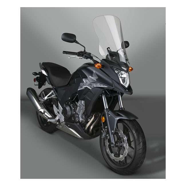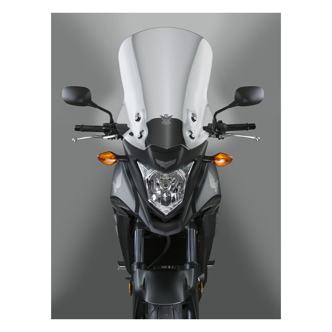 NC VStream® Touring windshield clearHeight: 21.00" (53.3cm); width : 15.5" (39.3cm); clearFMR hardcoated polycarbonate; use existing mounting hardware