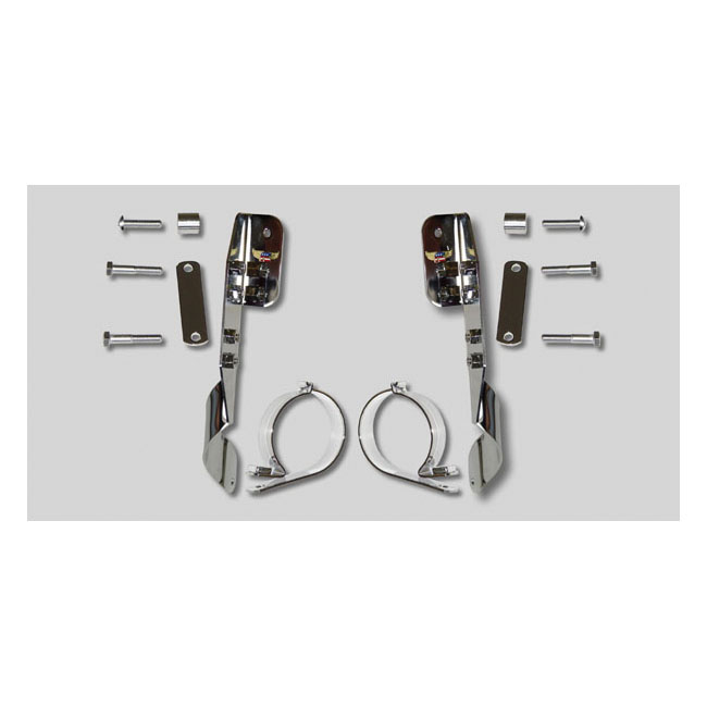 NC Heavy Duty™ Mount kit, Tapered forksChrome. Brackets mount to the top triple tree and fork tubes. For National Cycle Ranger; Custom & Low Boy (narrow frame) Heavy Duty™ windshields & National Cycle Dakota 4.5™ windshields.