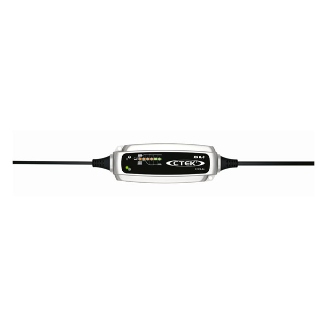 With EU wall plug. 0.8A 12V trickle charger. Charges 12V lead-acid batteries from 1.2Ah. to 32Ah and will even maintenance charge large; up to 100Ah.; batteries. Compact; the smallest in the CTEK line up and comes with a fully automated 6 step charge sequence. Simple to use and you can follow the whole charging process on the clear; easy to read display. - 12V. - 0.8 Amps. - 1.2 Ah to 32 Ah lead-acid batteries. - 6 steps. - Clamps. - Eyelet connector. - Splash and dust proof (IP65). - Lead Acid batteries. - 1.2 Ah to 32 Ah. - Safe spark free operation. - Reverse polarity protected. - Short circuit proof.