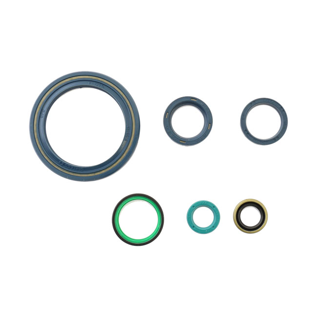 This engine oil seal kit includes all the oil seals in the engine and meets OEM specifications.
