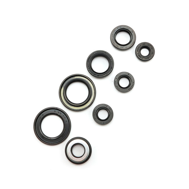 This engine oil seal kit includes all the oil seals in the engine and meets OEM specifications.