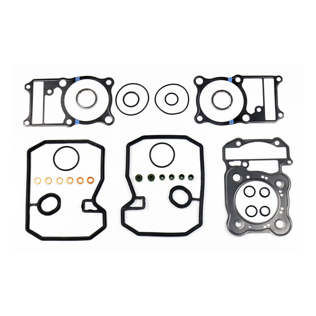 The Athena top end gasket kits include all necessary gaskets to rebuild the top end of the engine from the base gasket up. Kit includes all rubber gaskets; such as valve cover gaskets; o-rings and valve stem seal. High temperature blue silicon beading on most critical flat gaskets.