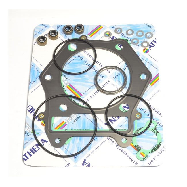 The Athena top end gasket kits include all necessary gaskets to rebuild the top end of the engine from the base gasket up. Kit includes all rubber gaskets; such as valve cover gaskets; o-rings and valve stem seal. High temperature blue silicon beading on most critical flat gaskets.