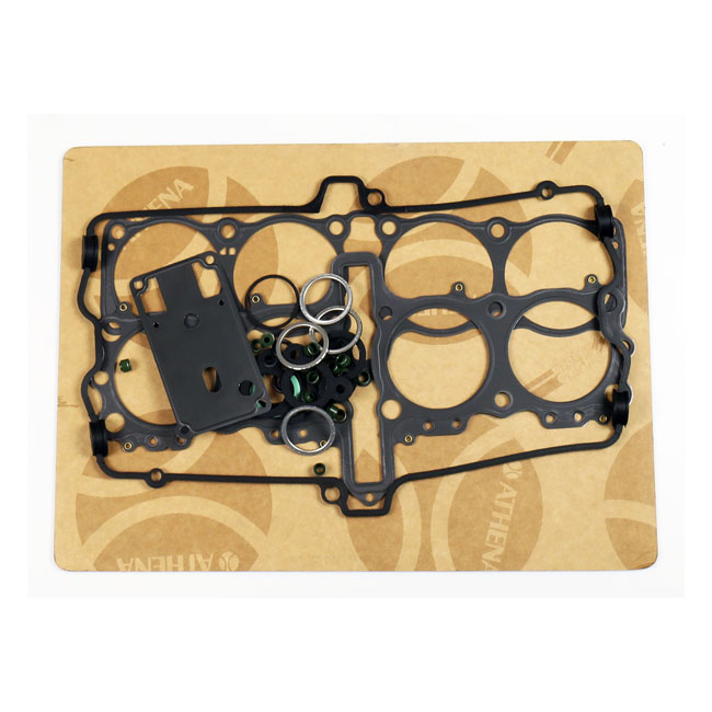 The Athena top end gasket kits include all necessary gaskets to rebuild the top end of the engine from the base gasket up. Kit includes all rubber gaskets; such as valve cover gaskets; o-rings and valve stem seal. High temperature blue silicon beading on most critical flat gaskets.