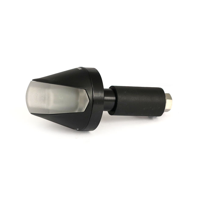 Jewel, in-bar LED turn signal. Clear lensECE approved lens. With high power LED. Black anodized 6061-T6 aluminum housing. Dimensions: 36mm diameter x 42mm overall length. Wiring length 80cm. Fits 13mm up to 17mm I.D. handlebars.