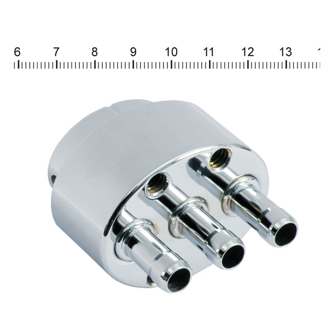 Chrome plated brass fuel valve that allows the custom builder to attach the fuel lines directly to the gas tank; and route them to the fuel valve. The fuel valve can be remotely mounted anywhere on the bike; is equipped with 5/16" fuel hose fittings and an On/Off/Reserve setting. It can also be mounted directly to the bottom side of a custom gas tank when the tank is built. - Chrome plated brass - On/off/reserve - For in-line use; with 4 mount holes - For 5/16" (8mm) fuel hose - Dimensions: 1-1/2" (3.8cm) high x 2" (5.1cm) long x 1-3/8" (3.5cm) deep. Why a Pingel? If you need a petcock that is made without compromises; you'll want a Pingel. Pingel petcocks are world famous for their gas guzzling capabilities and if you think you don't need a high flow petcock... think again. With a regular petcock; when traveling at high speed; even with a stock engine; it can happen that your bike uses more fuel than a regular petcock can deliver. The engine sucks the float bowl dry; literally starving the engine. With High Performance Big Inch motors the problem increases. Pingel petcocks can supply the amount of fuel your engine needs to perform.