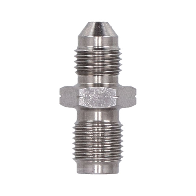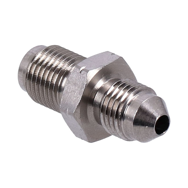 Goodridge adapter fitting, high polished stainless steelStainless steel; M10-1.00 inverted flare to male 3/8"-24 AN-3