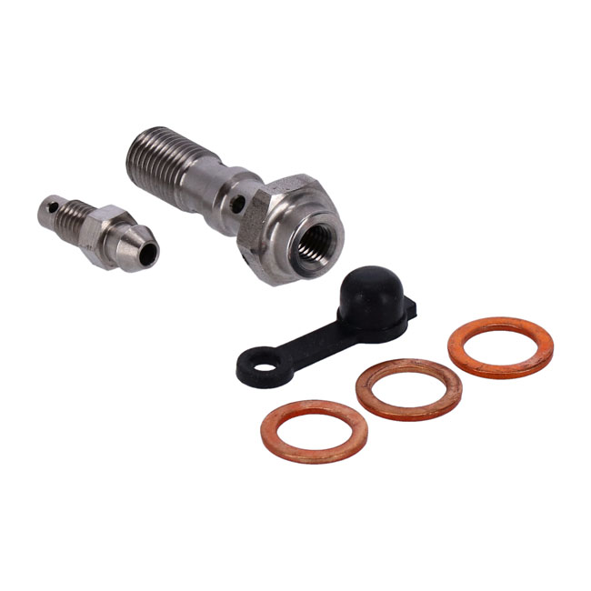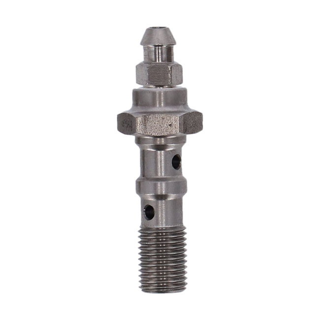 Goodridge, 3/8-24 double banjo bolt with bleed nippleHigh polished stainless steel.