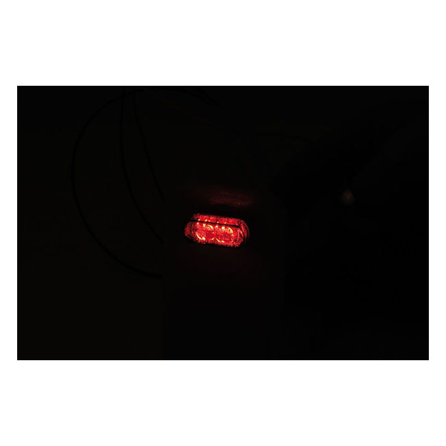 Smoke lens. ECE approved for rear horizontal or vertical use. Miniature lights with SMD power LEDs. Housing dimension of just 21.5mm wide x 8.5mm high x 10.5mm deep. Plastic body. Perfect for laminating or gluing into position. Yellow wire = taillight; red wire = brake light; brown wire = turn signal; black wire = ground. Note: An optional steel housing; for other installation options; is separately available as 922143.