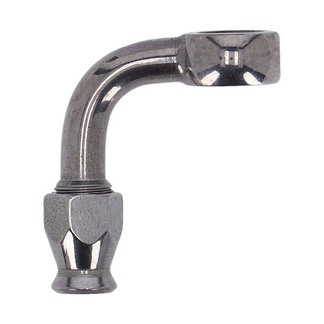 Goodridge, 3/8" (10mm) banjo fitting 90 degree bend. SSHigh polished stainless steel. Used in combination with Goodridge Build-A-Line brake lines. These fittings are installed on one or both ends of the brake line.