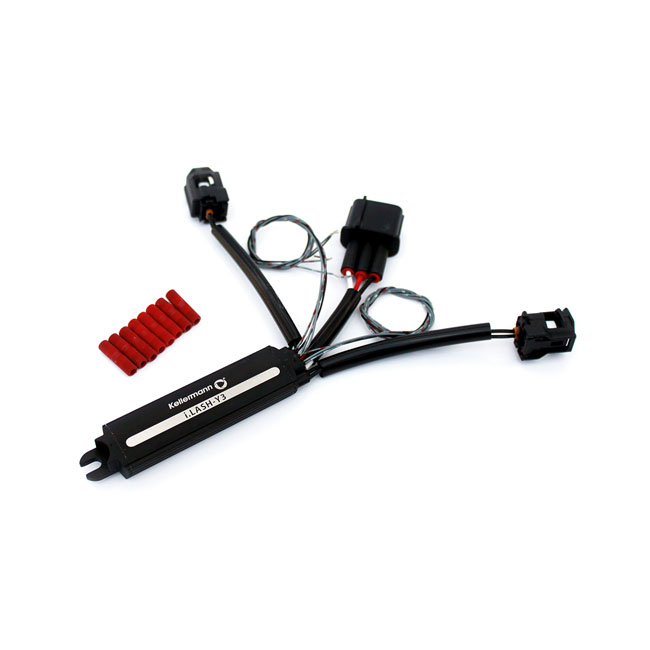 Rear; for 3-1 dual function turn signal/taillights/brake lights. Used in combination with the stock turn signal flasher. Will prevent dashboard warning lights being triggered. Corrects the LED turn signals flash rate when required. Load equalizers are not necessary. Offers installation ease when converting to Kellermann LED; other custom LED turn signals. Comes with the motorcycle type specific adapter cable. Dimensions: 93.3mm long x 21.8mm wide x 10.9mm high.