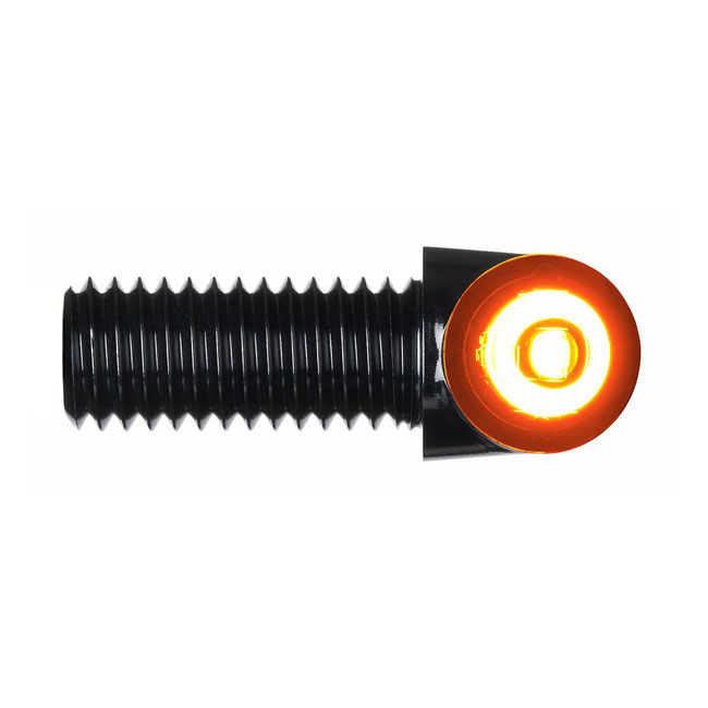 Black anodized. Taillight. ECE approved as taillight and brake light. M8 threaded with a miniature aluminum housing. At the time of introduction these mo.blaze tens are the smallest lights; for this application; in the world. The development of a special lens; offering a lateral beam; made increased visibility from an angle possible. The LEDs used are offer the highest light output available through the use of the latest LED technology. Power consumption is 1 Watt each. Dimensions: Housing 11mm long x 11mm diameter. Overall length with M8 threaded stud 29mm. Wiring length approx. 110cm. Weight with wire approx. 20 grams. Complete with installation instructions. Note: Sold each. Order two to receive one pair.
