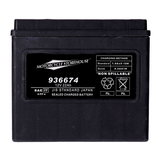 12 Volt; 22Ah; 325 CCA (Cold Cranking Amps). Dimensions: 174mm long x 99mm wide x 154mm high. Best bang for your buck. This is a quality AGM (Absorbed Glass Mat) sealed battery of the MCS Standard Series. Maintenance free (just keep them charged). No liquid. Vibration and heat resistant and a very low self discharge rate. Will out-power virtually all conventional lead-acid and gel batteries of identical dimensions. OEM replacement reference 65989-90; 65989-90A; 65989-90B. 66000211; 66000211A. Note before installation: Never start the engine before you have fully charged your new battery; to prevent irreversible damage that will ultimately shorten its life span. It is absolutely mandatory to fully charge any new AGM battery before installation. After production AGM batteries are factory activated and will; during storage; slowly discharge. Re-charge at least every 3 months. Recharging sooner may be required in hotter or cooler temperatures. Vehicle electronics; like a clock; alarm etc. will additionally drain an installed battery. AGM batteries will not handle a too deep discharge well. Keep them charged at a minimum of 12.4V for best performance through its life span. Connect the battery to a suitable automatic 'maintenance charger' when not in use for a period of time to retain the optimum charge level.