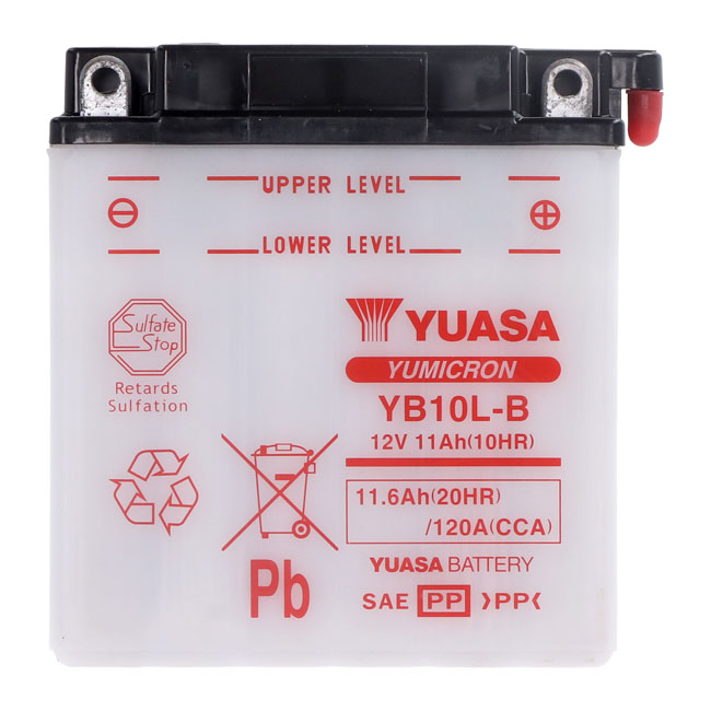 Yuasa, Yumicron battery YB10L-BEngineered to protect against corrosion; withstand vibration and deliver more cranking power to your motorcycle.