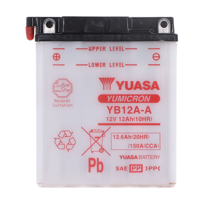 Yuasa, Yumicron battery YB12A-AEngineered to protect against corrosion; withstand vibration and deliver more cranking power to your motorcycle.