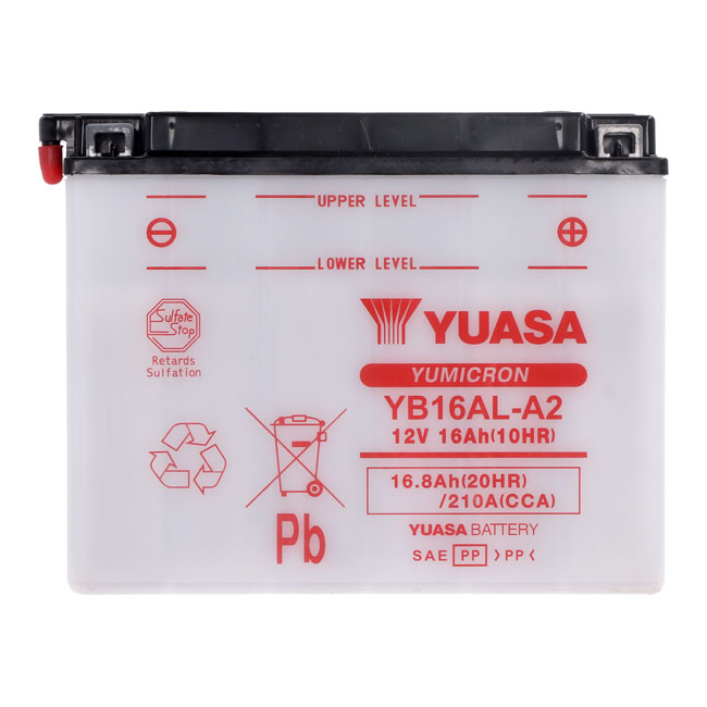 Yuasa, Yumicron battery YB16AL-A2Engineered to protect against corrosion; withstand vibration and deliver more cranking power to your motorcycle.
