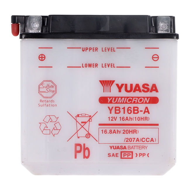 Yuasa, Yumicron battery YB16B-AEngineered to protect against corrosion; withstand vibration and deliver more cranking power to your motorcycle.