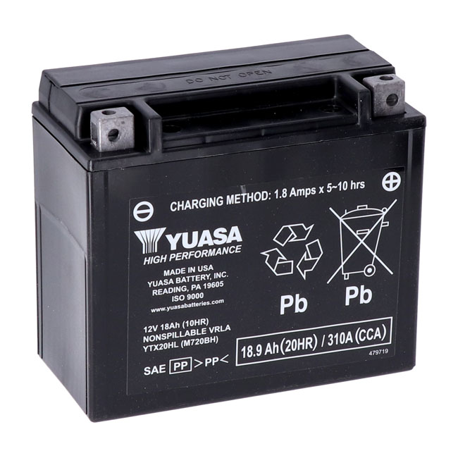 Yuasa, High performance AGM battery, YTX20HL-WCYuasa’s elite performer; the AGM (Absorbent Glass Mat) series; has more cranking amps and higher amp hour capacity for years of trustworthy service.