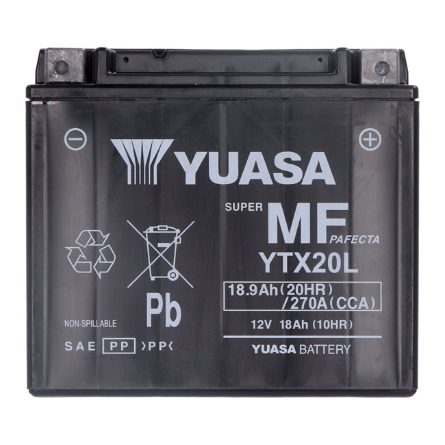 Yuasa, AGM battery, YTX20L-WCYuasa’s elite performer; the AGM (Absorbent Glass Mat) series; has more cranking amps and higher amp hour capacity for years of trustworthy service.