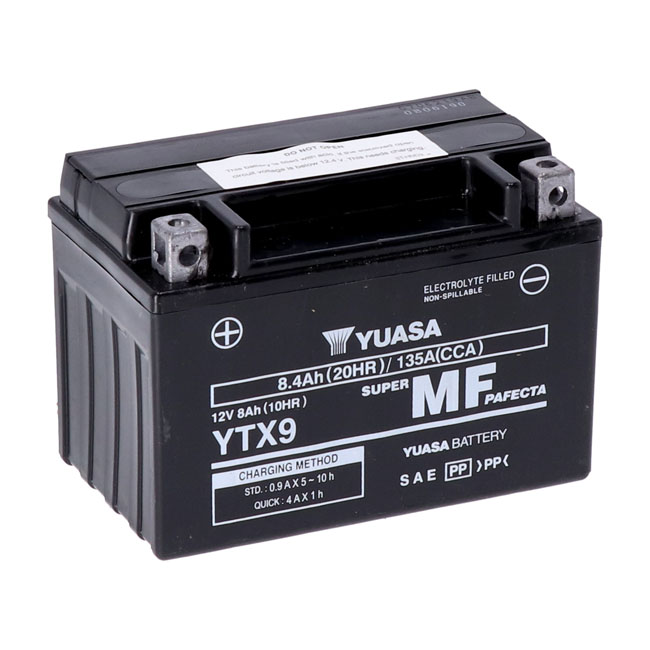 Yuasa, AGM battery, YTX9-WCYuasa’s elite performer; the AGM (Absorbent Glass Mat) series; has more cranking amps and higher amp hour capacity for years of trustworthy service.