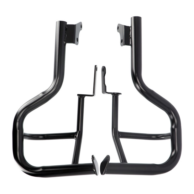 This crash bar is built from 38mm steel tubing. Designed to work with stock components. Complete with installation hardware. Note: For protection in tip-over events only. Not designed for crashes while riding.