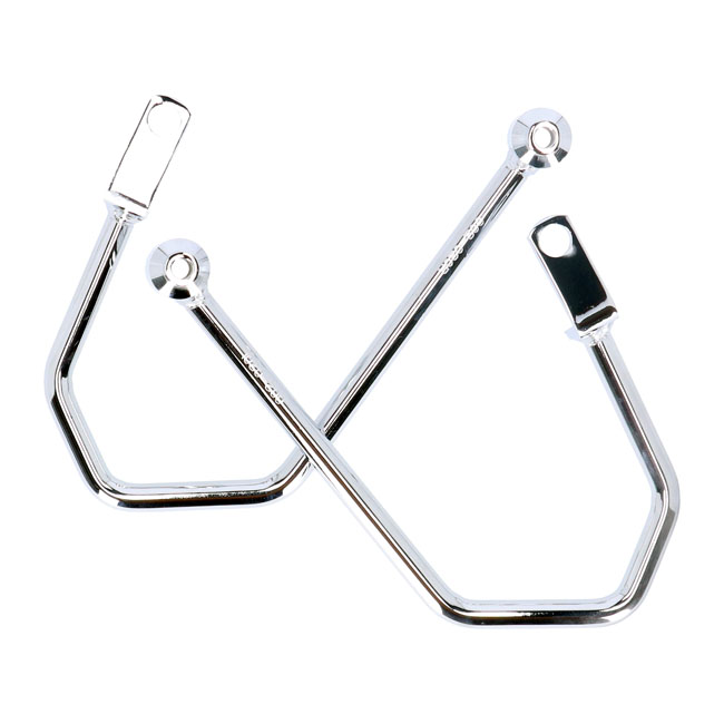 Highway Hawk, saddlebag support kit. ChromeChromed plated steel pannier supports. Easy bolt-on installation to the original mounting points of the fender. Includes all installation hardware.